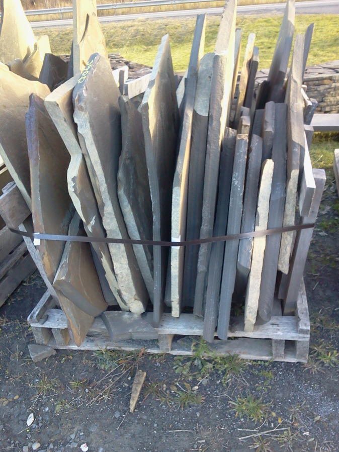 Flagstone, also called flagging, is a flat stone slab, typically rectangular or square, used for outdoor paving of floors, stairs, pathways, and patios. At Heldeberg, you can purchase bluestone or slate flagstone from 1″ to 2 1/2″ thicknesses. Our stone is classified as hard, fine grained sandstone from the Devonian geological period. It is typically a dark blue-grey stone with a natural cleft face. Irregular flagging is sold by the ton and pattern flag is sold by the square foot.